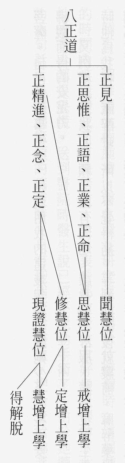 现依据印顺法师《成佛之道》,将三增上学及闻思修证四种慧位,与八正道的关系,列表如下: