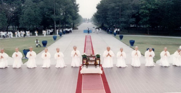 我们都换上白色的长袍,赤脚列队,在大殿外的平道上,静黙等待。