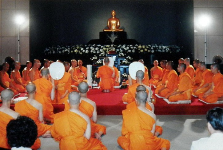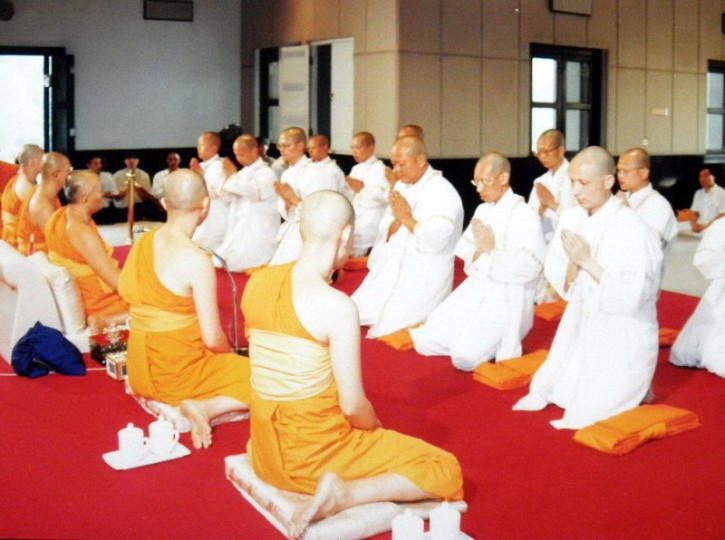 还好,反复背诵的巴利文出家文,在对答中过关了,三人一组受戒,我是第一批成功者。