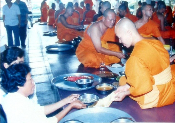 所以,每次吃饭的时候,一定要有居士把所有的饭菜准备好,然后跪拜奉上,接受后才能吃。