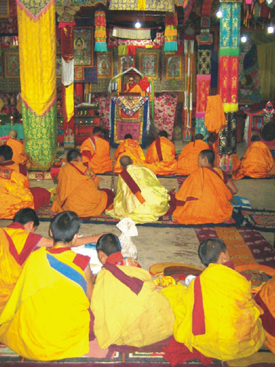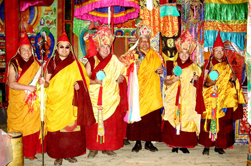 节日的供养,特别是上下十日的每一次丰盛供养,仅酥油灯鬘就有数百盏,会供云聚,尽量丰盛。