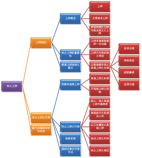 依止上师分三:上师概述;依止上师之次第;善巧远离恶知识与恶友。