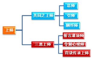就共同见解而言,上师分为六种,如《大圆满直指心性注疏》云:“总师引师誓言灌顶师,酬忏师与令解心续师,以及窍诀传承诸上师。”其中最重之对境为誓言灌顶师、令解心续上师及窍诀传承上师,亦称为“三恩上师”,切勿诽谤而犯密宗根本戒。