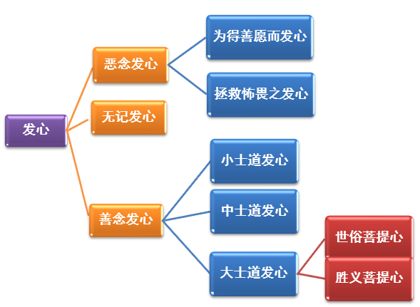 善念发心分三:小士道之发心、中士道之发心、大士道之发心。
