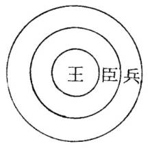 我现在画一个图形,这个盗贼窝最里面是他们的贼王,这王也就是我执,以自我为中心的思考。因为有我所以要维持生命,要肯定生命的价值,此乃王旁边的诸位大臣。因为要有成就感、优越感、安全感,故得用种种手段以争取之,这是外围的将官士兵。这模型是以自我为中心的一种执着。这执着有它的层次,越外面的执着,我们越容易看得到。例如我想喝水是因为口渴,喝水是大家都可以看得到的。而口渴则是比较内在的感受,再问为什么口渴便要喝水?因为我要活下去!那你又是谁呢?你为什么怕死呢?众生的执着是有层次的,能断除什么层次的执着,我们就可以得到何等的悟境。一般人想要一口气直捣黄龙把王去掉可不容易。所以参禅一次就能大彻大悟没有那么简单,能够去掉几个将官,已算是很有善根了。
