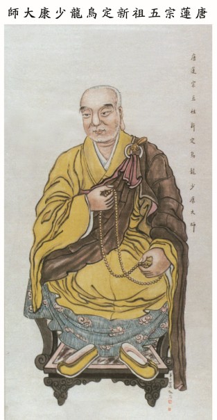 唐朝贞元初年,大师到洛阳白马寺,见殿中文字放光,顺光探寻,是净宗二祖善导大师的《西方化导文》。大师欣喜地祝告:“如果我与净土有缘,愿此文再现光明。”刚说完,光明果然重新闪烁,而且在光中隐隐现出化佛菩萨。大师就发誓说:“劫石可以磨灭,我的大愿不能改变。”接着,大师就到长安光明寺善导和尚影堂,礼敬二祖。瞻仰之间,忽然看见善导大师的遗像化成佛身,上升空中对少康大师说:“你依照我的教导,广度有情,他日功成之时,必生净土。”