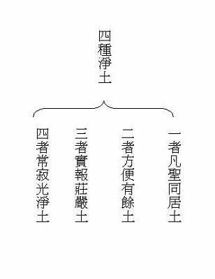 净土法门之义理极为深广,能深能浅,迷悟有别,染净有分界,是故,净土法门的层次,就有四种不同的境界,按照个人修证的历程,所感召的净土就有所差别了,现在就将四种净土的层次,分别叙述如左: