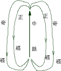 前次有谓:「脉在上升头顶后,将有外延的趋势。」然脉如何外延呢?这乃与正经、奇经之交接有关。故本次主题,乃申论从中脉至正经与奇经。