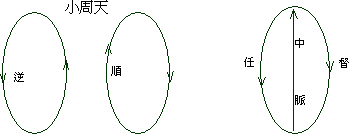 除非用参禅法门,直接打通中脉。否则,在疏通气脉时,乃是先完成于「小周天」;然后再外延而为「大周天」。此大小周天,皆既可能是从前腹到后背的顺转,亦可能是从后背到前腹的逆转。必待打通中脉后,才可能形成前后俱下的磁场状。