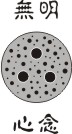 此图,外面的大圆,代表佛性;里面的黑点,表示心中的妄念亦称烦恼。坛经云:「人性本净,由妄念故,盖覆真如;但无妄想,性自清净。」修行修心,心若无妄念,即能明心见性,故华严经云:「若人欲识佛境界,当净其意如虚空,远离妄想及诸取,令心所向皆无碍。」