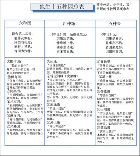 《入中论》第十次课程总第十九讲之:他生的因、缘、果元素总表