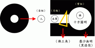 我们也可以说,在修行中,众生依佛之开示,由本具{A*}与{a*}的潜移默化,将长期执着所成{A’a’}逐渐转变为{A*;a’=a*}。