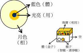 由上文所说,可知此三种理论所说的内容不同,中观论以本具之空性为主,讲{A*a*}之诸种性质,而唯识论以说明世间虚妄之诸法及修行去染转净之事,故主要说明{A’,a’=a*}之内容,而佛性论以叙述空与不空如来藏为主,即讲{A*a*}与{A*,a’=a* },但不讲{A’,a’},故三者所说都是佛法的一部份,也都没有错,彼此之所以有争议,是以为自己所知即是一切,想以自己理论的内容去涵盖他人的理论,以自是他非,把自己所说的理论的名词扩大解释,故有争议。以修行角度观之,中观成就者,可以当下见自心之空性与诸法,故当下诸法即空即假名即中道之义。但其未照见种子详细相状之存在,智种子在其直观之中,只见一片亮光(故即空性)。但另一类福报较大的修行者,若修「唯心识定」之类的禅定,定中有见染净各种「识种子」与「净种子」、「智种子」等。故其会说诸法是识种子所现。基于这些修行之证量,加上对释尊在一些经中所作的开示,故发展成中观论与唯识论。但由于不详知其各自所知与所证只是佛法的一部份,不是涵盖一切佛法。例如,有人说海水比喻为第八识,它是生灭与不生灭和合;水之湿性为如来藏,是不生不灭的体性。波浪是前七识,属生灭;猛风指无明,非生灭非不生灭。但此第八识只是指{a’,a*},只提种子,未提第八识的功用{A’}。其如来藏只是指{a*},未提{a’=a*},也没有说明第八识具有无明的性质,其功用是虚妄性质,故此论亦不全然正确。此外,本理论亦可用以了解部派所说、所争论之内容(见二之文),例如,上座部所说心性本净客尘所染,此应是指{A*a*}之范围。有部主张心染是指{A’a’},解脱时由另一种清净心取代,即{A*a*}非众生本有,亦非由{a’}而来,故此说与佛经不合。大众部认为心性本净,但不是现在净,解脱后成净而不再染,这是指{A’a’}修成{A*,a’=a*}之义,此与唯识宗之说大致相同。此外,像中国南北朝摄论师之说,只属{A’→A*,a’=a*}之范围,其与唯识之说亦同一类。而北方地论师所谓「佛性当常」,此即指{ a’=a*}之义,亦属唯识之范围,讲的是不空如来藏;而南方地论师说「佛性现常」,此应是指{A*a*},即空如来藏之义。