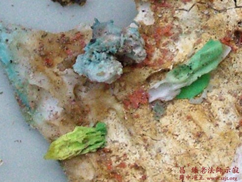 老法师示寂后,我们遵循其生前遗愿,丧事一切从简办理。组织七日念佛助念,及装龛、荼毗和追思法会,一切顺利完成,功德圆满。装龛时,老法师银髯轻拂,面色红润,神态安祥,如入禅定;结跏趺坐,全身柔软状如婴儿之体。元月2日荼毗后,弟子们从骨灰中检到舍利,大小不等,数以千计。