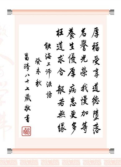 ⒌净土法门为末法众生对症良药。只要我们坚持按“持戒修行,弘法利生”宗旨做去,必蒙三宝加持,龙天拥护,四众信赖,道风兴盛,后继有人,可断言也。