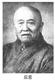 应慈(1873―1965)安徽歙县人,俗姓余,字显亲,自号华严座主。师毕生以弘扬华严为职志,以参禅为心宗,倡刻《华严经》三种译本、《华严五教章》(法藏)、《华严大疏演义钞》(澄观)及《法华》、《楞严》、《楞伽》等诸经疏。他是佛教界一位爱国爱教的高僧,抗战时期,多次拒绝敌伪请他主持法会的要求,其民族气节,为世人所称颂。主要著述有《心经浅说》、《正法眼藏》、《八识规矩颂略解》等。