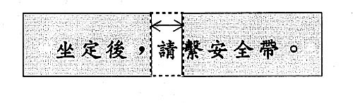 如果看完这几个字要一秒钟,而「时间宽度」也是一秒,我们就能了解整个句子的意思;假如「时间宽度」是十分之一秒(如图虚线部份),我们只能得到一个「请」字的意思,其他部份如「坐定后,」则属过去而消失,「系安全带。」则是未来尚未发生,所以得不到整个句子的意思。假如「时间宽度」是百万分之一秒,那么连一个字的意思都无法了解了。现在大家都可以了解整个句子,表示大家的「时间宽度」超过一秒,当然也证明有「时间宽度」的事实。