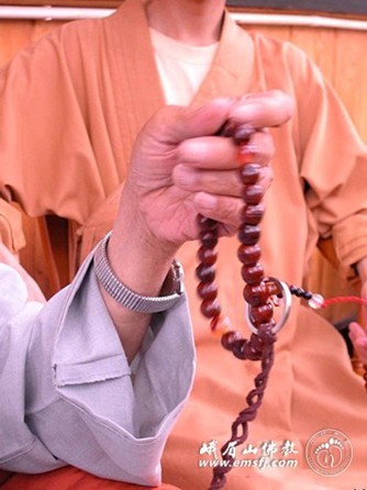 老和尚生前每天都要坐在峨眉山报国寺之佛像开光处,坐于一藤椅上,左手握一念珠,嘴唇微微启合——那是不间断的金刚持念。一面念佛,一面为有缘众生赠送念珠,并一一婆心劝诫:念佛、 念佛! 为众生种下成佛的往因,并深切地强调“念佛就能够成佛”!据统计,多年来他老人家赠送的念珠已达十万之数。