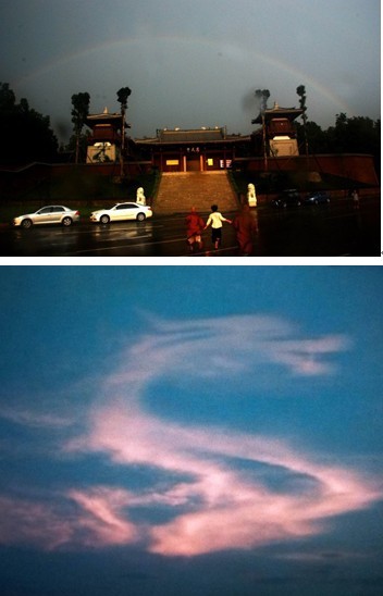 据悉佛智长老的追思法会刚结束,法体抬出大雄宝殿的那一刻,天空佛光乍现,直射大雄宝殿。就在人们惊叹之际,顷刻间天降豪雨,冲洗着凡世红尘;当佛智长老的法体荼毗之时,天空彩虹高悬,整个应天寺笼罩其中……又闻荼毗后,示现了133粒舍利子。