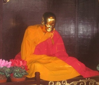 上本下丰长老肉身舍利被置放进药泉山北坡的水泥塔内,一恍就过去了三年。2011年3月18日,钟灵寺进行了开塔的仪式,令人惊喜的一幕出现了,上本下丰长老头发如生前一样黝黑发亮,脸上皮肉完好,身体全无异味,这就意味着上本下丰长老的肉身舍利没有做过任何防腐处理,却成就了一尊肉身菩萨。