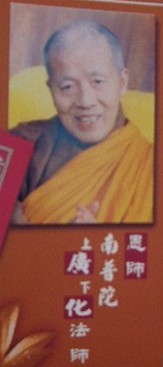 一九五七年,丁酉,七十一岁,秋季观音法会,为彭居士华元剃度,法名振教,字广化(原注:以上纪事,为律老人亲笔所记;以下为随侍弟子广化谨撰)。秋,师自备饮食衣物等具,携侍者广化,为台南仙草埔东林精舍(陆军肺病医院伤患官兵所建的军中道场)伤患官兵,开讲《无量寿经》。冬,重修慈善寺大殿。