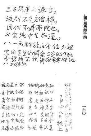 1993年农历四月二十三,法师已经辟谷四十九天,一弟子请问老法师:“师父,您说四十九天圆寂,今天就是四十九天,您几时走?” 法师的表情突然十分兴奋、激动。晚9点多钟,法师对前来探视的四众弟子最后讲了一段妙法莲华经之后说道:“我将心留给众生,请将我的遗骨安埋在东佛沟内。实际我的真实岁数今年已是103岁了。” 说毕,便再无声息。众人看时,已阖眼闭目,盘腿打坐,悄然圆寂。