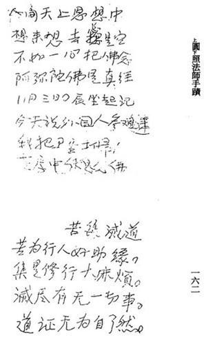 圆照法师跟随圆瑛法师修法十余载,足迹遍及大江南北。战乱时期,经历无数艰难困苦,受到圆瑛法师无微不至的关怀和父母般的爱抚,更伶幸了老人家的谆谆教诲。