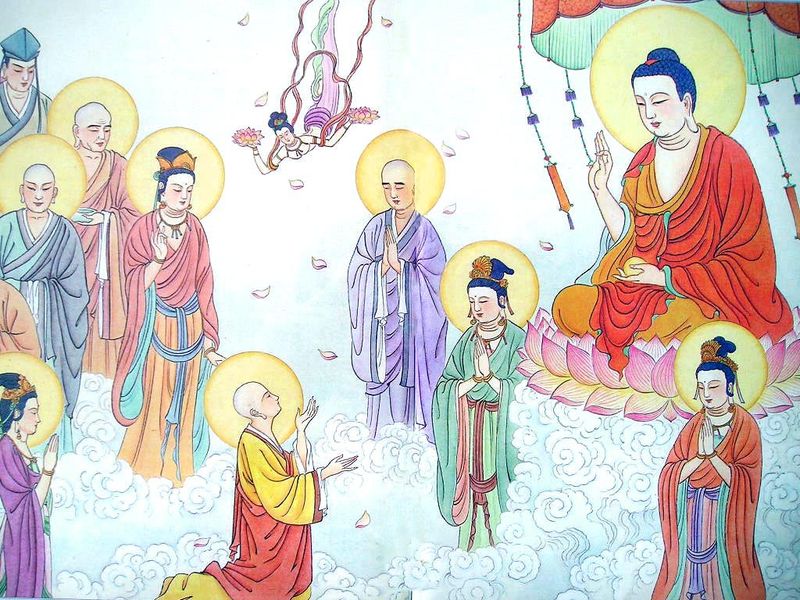 最后,弥勒菩萨问阿那律尊者:“为什么布施一缽饭菜给持戒的修行人 和听佛法,胜过得到全天下的金子呢?”