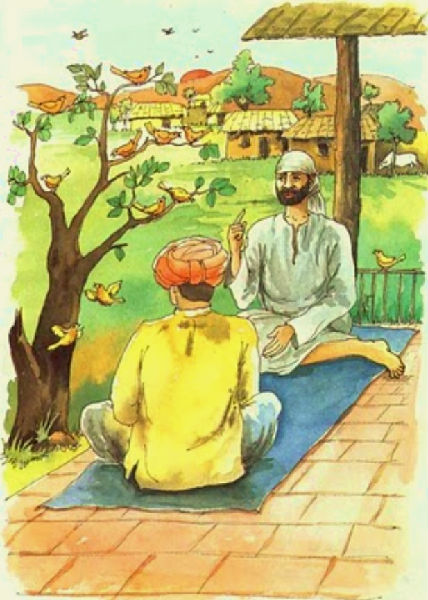 师傅的太太看到此情形很生气,责备穿珠师傅说:“你真糊涂! 你只要帮那富翁穿珠宝,就可以净赚十万钱,而你却在听道理,错失赚大钱的机会。”