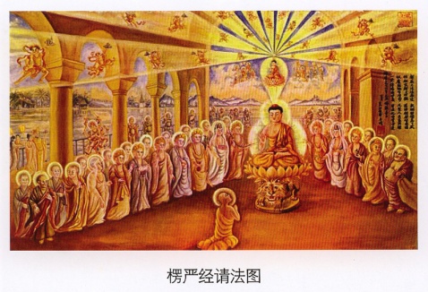 楞严经是佛教三藏教典中的一部大乘经典,佛灭度后,弟子们结集成经,弘传于印度,竟因年久失传,唯独龙宫藏有此经。后来,有一位龙胜菩萨,到龙宫说法,发现此经,文义俱妙,细读之下,叹为希有,默诵于心;离开龙宫后,录呈国王,王视为国宝,藏于国库,不准流传他国。
