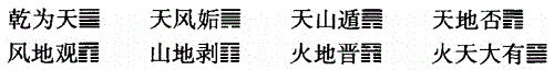 乾为天,天风姤,天山遁,天地否,风地观,山地剥,火地晋,火天大有。