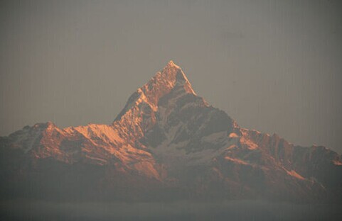 博卡拉是除加德满都之外,尼泊尔又一主要城市。位于该市的雪峰沙浪库莫尔峰据说是一个有着众多圣者和修行人的地方。它的西边是安娜普纳山,总共有五座长年不化的雪峰。太阳升起来,把五峰的积雪映得金黄。山峰直插云霄,让人感觉铺天盖地都是这一座雪山的身躯。向导介绍说:在雪山的那边,如果有谁不停地往前走,还能发现不少修行人。他们不怕寒冷,住在深山里修行。