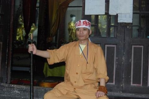 2009年,重庆温泉寺定融法师在寺院维权声明中说:要用手中的这杆秤称一称毁佛者的良心(图片来源:资料图)