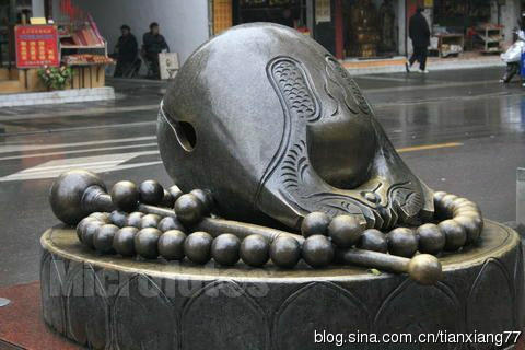 木鱼,顾名思义,木头做的鱼,到中国大陆的佛寺,就会看到一个大木鱼。肚子剖开的,吊在五观堂旁边的一条大龙鱼。长江三峡的龙鱼,这里有一个故事。因为印度没有木鱼、罄,它们是中国的法器。