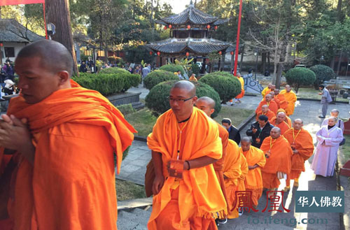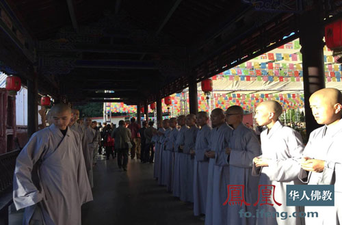 两序僧众迎请各界高僧大德参加此次为期两天的学术研讨会。(图片来源:凤凰佛教 摄影:天成)