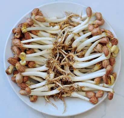 虽说大家都知道花生芽不能吃,但那说的是发霉的花生芽,而专门培植的花生芽不但能吃,而且营养还特丰富。有研究发现,花生芽的白藜芦醇含量比花生本身还要高上100倍,比葡萄酒中的白藜芦醇含量高出几十甚至上百倍,保健价值极高。花生芽还可以使花生中的蛋白质水解为氨基酸,易于人体吸收;而花生中的油脂被转化为热量,脂肪含量大大降低;与此同时,它还可以提高各种人体必需的微量元素利用率。