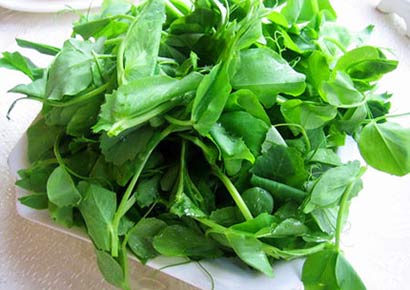豌豆尖以豌豆枝蔓的尖端而得名,富含维生素A、维生素C、钙和磷等营养成分,还含有大量的抗酸性物质,具有很好的防老化功能,能起到有效的排毒作用。豌豆尖味甘、性寒凉,具有清热解毒的功效,尤其适用于热性体质的人食用。豌豆尖既可与肉类同炒、同蒸、同涮,还可凉拌。但最好还是用大火快炒,以保持它的脆嫩,同时减少维生素C的损失。