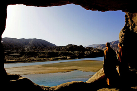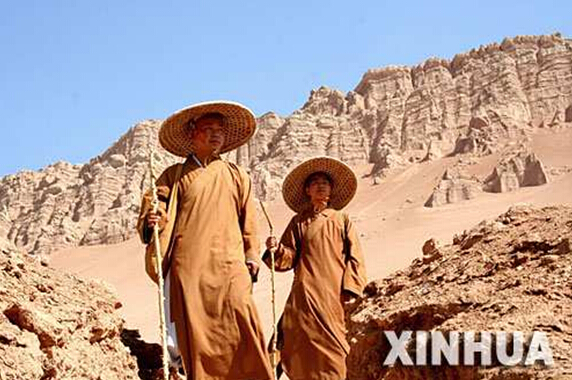 (图:明贤法师与慧在法师西行之路沿途走过火焰山)