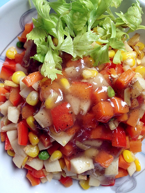 材料材料:红萝卜、淮山、玉米仁、青豆、青椒