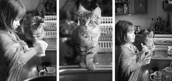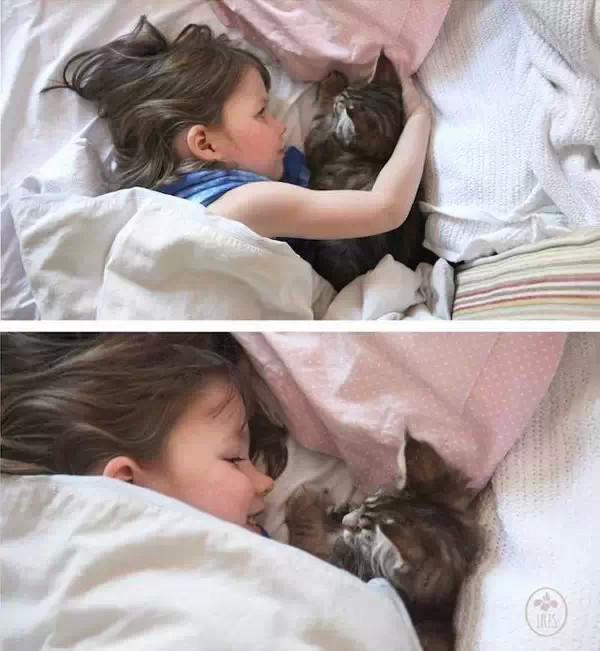 虽然一开始她也不怎么理会小猫,来自喵星球的小猫大概是有魔力的,长情的陪伴、柔软的爱已经一点一滴渗入她的潜意识中,母亲看到了她对它态度的改变。