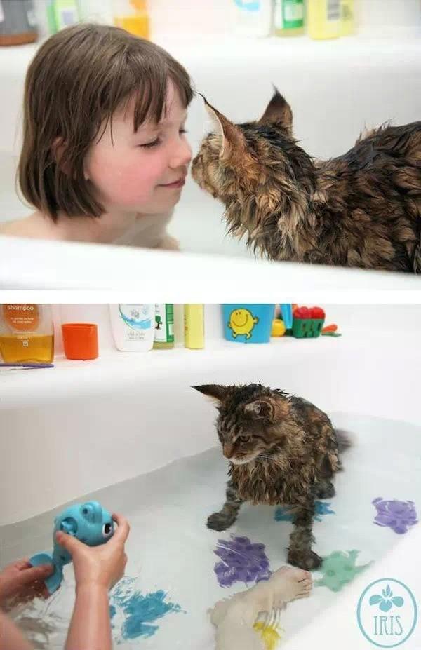 她跟小猫什么都聊,甚至在猫咪强行跳进她的浴缸时,她会跟它聊起海洋生物,猫咪心无旁骛地听着她一遍一遍地说着大海,直到Iris准备好了走出浴缸。