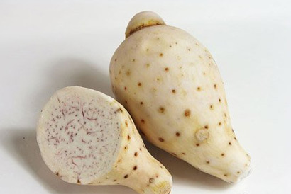 魔芋系一种根茎作物,有降脂、减肥、防癌、开胃的作用。它含有葡甘聚糖,其凝胶可在肠道中形成不同孔径的半透明膜附着在肠道黏膜上,形成防卫屏障,阻挡有毒物质与致癌物质的侵入,起到防癌与防肠道病的作用。