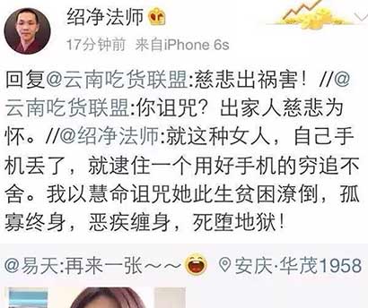 不仅如此,还发展团队作案,该团伙成员以沙弥演进的名字开通微博,并瞄准信佛多年的明星孟庭苇,发私信逼其做功德,不做功德就百般讽刺,被孟庭苇果断拒绝呵斥,并发出微博提示网友网络假僧人太多,还需智慧明辩,该微博发出后,引发网友疯狂转载和评论。