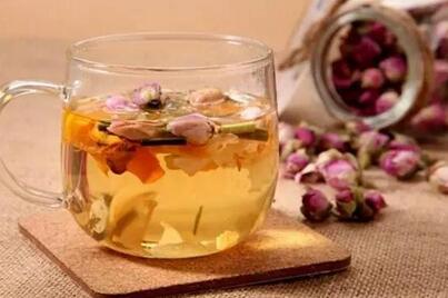 准备玫瑰花、黑茶、适量蜂蜜。将玫瑰花放入黑茶茶汤中,待稍凉,凭个人口味加一些蜂蜜即可饮用。