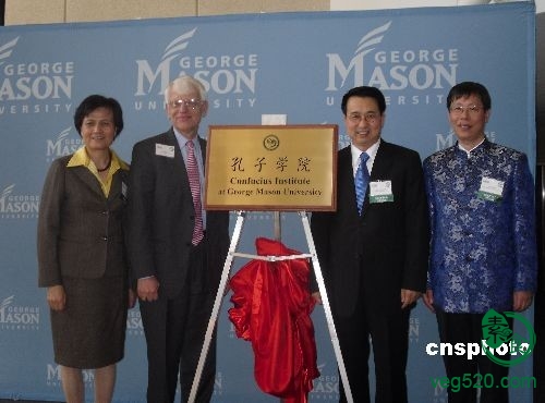 资料图片:4月16日,美国第53所孔子学院——乔治梅森大学孔子学院成立,中国国家汉办主任许琳、中国驻美公使刘光源等前去祝贺。中新社发