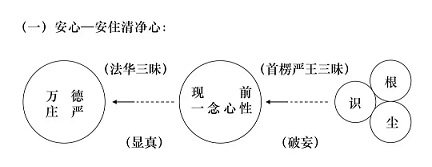 圣道门,第一个,安心,安住清净心。这个是《法华经》第一个思想,观照现前一念心性当体即空。那么第一个,为什么要修空?第二个,要空掉什么?这个我们要注意一下。我们先往下看。