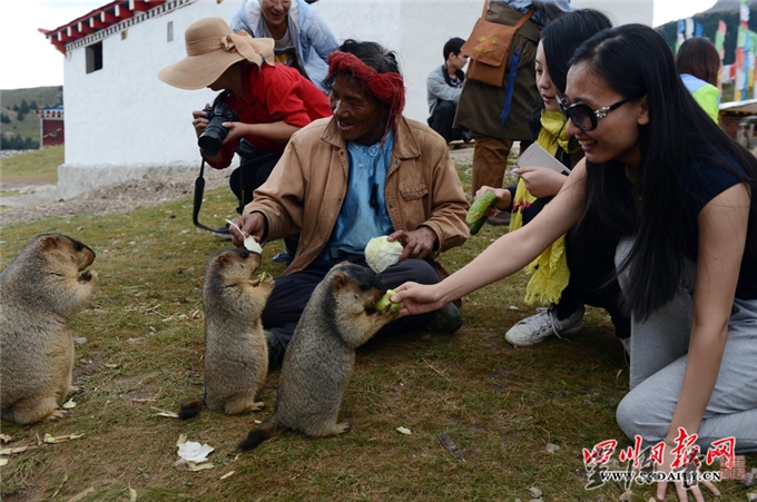 野生旱獭融入藏族牧民生活