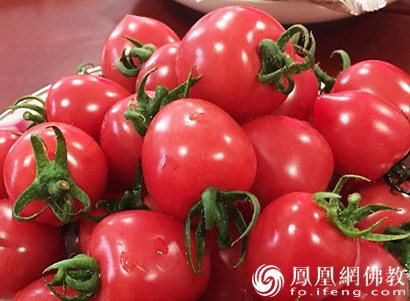 圣女果,常被称为小西红柿,中文正式名称为樱桃番茄。(图片来源:凤凰网佛教 摄影:闫秀勇)