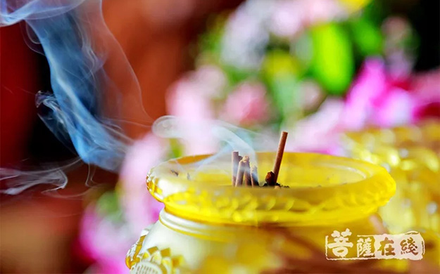 “愿我身清净如香炉,愿我心如智慧火,念念戒定真香,恭奉十方三世诸佛。”于佛、菩萨像前燃香意为表法,香象征“自性本具”,见燃香如闻自性。提醒世人当回归自性,自性清净自生香。