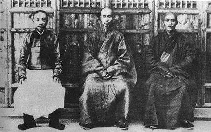 弘一大师出家后,孤云野鹤,行踪飘忽。1921年,他住过的地方就有衢州、杭州、上海、温州等地。他在杭州玉泉寺居住时,其意是"习静念佛,谢绝人事"。但他的旧友、学生又哪能忘了他。农历三月五日,有陶秉珍、朱章卿至杭州玉泉相访,并留下了此照。该年早春,大师弟丰子恺赴日本游前亦专往杭州闸口凤生寺与老师话别。1923年农历二月,弘一大师离开温州赴上海前与其徒及寺主摄影留念。因弘师在此照上的题记全文是:"岁次癸亥二月廿四日,恩师弘一比丘将赴沪上,因弘名字沙弥剃发出家,谨请寺主寂山老和尚,合摄此影于南城外庆福禅寺以留纪念。"